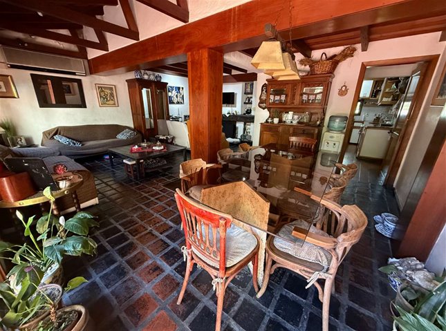 Planta alta: playroom o estar en planta alta (posible cuarto dormitorio) con acceso a una amplia buhardilla con placares. Corredor de distribución hacia los tres dormitorios, uno de ellos en suite al contrafrente y los otros dos, al frente, comparten un segundo baño. Todos los dormitorios con placares y persianas de madera.