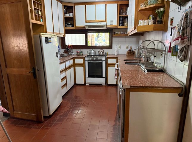 Planta Baja: jardín al frente, recepción, living comedor en forma de L con estufa a leña, vigas de madera en el techo y grandes ventanales con salida a un gran fondo con parrillero con posibilidad de construir barbacoa o piscina. Cocina definida con abundantes placares, toilette, garaje cómodo para un auto y lugar para un segundo auto entre rejas en el frente. Servicio independiente y lavadero. Cómoda escalera para acceder al segundo piso.